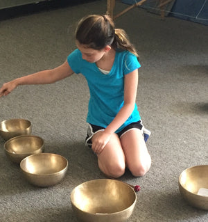 High grade Tibetan Singing bowls tuned set for sound meditations in yoga from Tibetan Tones. Total 7 of Finest quality of 100% pure bronze bell metal. Sound is to perfection. Set by design to produce longer vibrations and induce theta wave state. For Sound Yoga and Family practice.